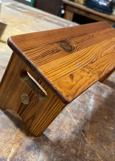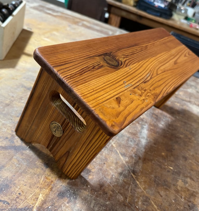 Banquinhos em madeira maciça com tampo inclinado - auxiliar para a pratica de meditação - mantem a coluna lombar ereta. Tampo com Largura de 40 cm x 14 cm, altura de 18 cm.